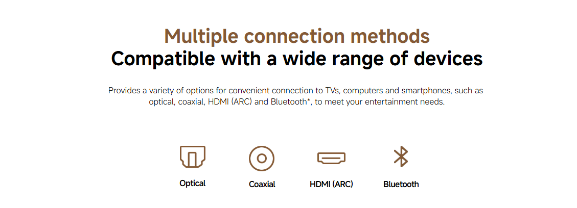 Connectivity | NFC fast pairing, Bluetooth, HDMI (ARC), Optical, Coaxial |
