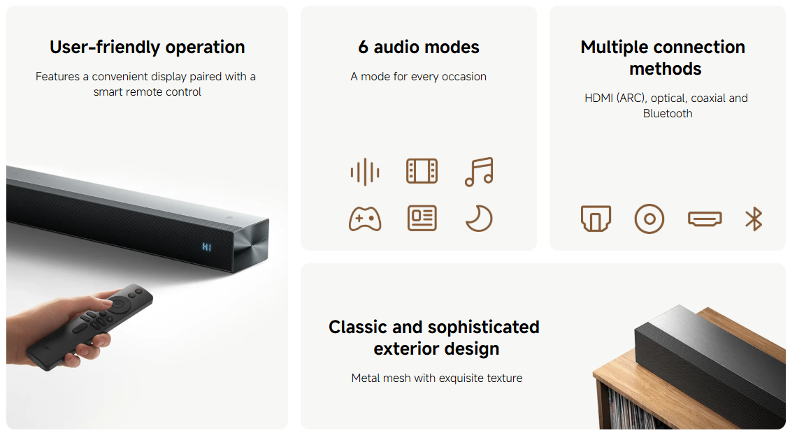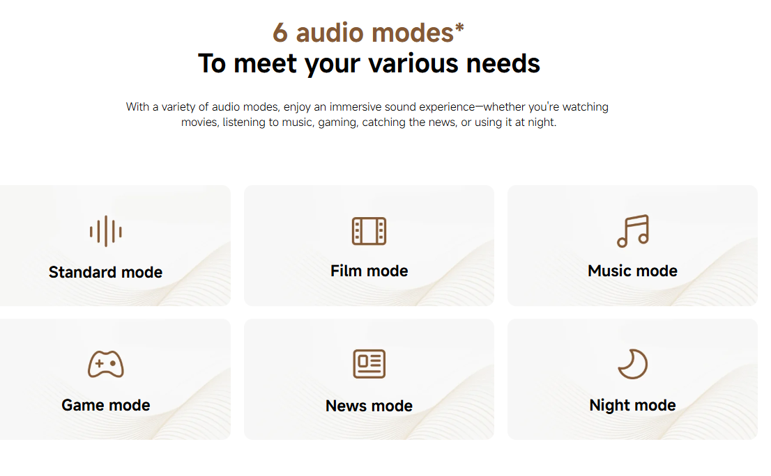 Smart Sound Modes: Six presets ensure optimal audio for every content type.