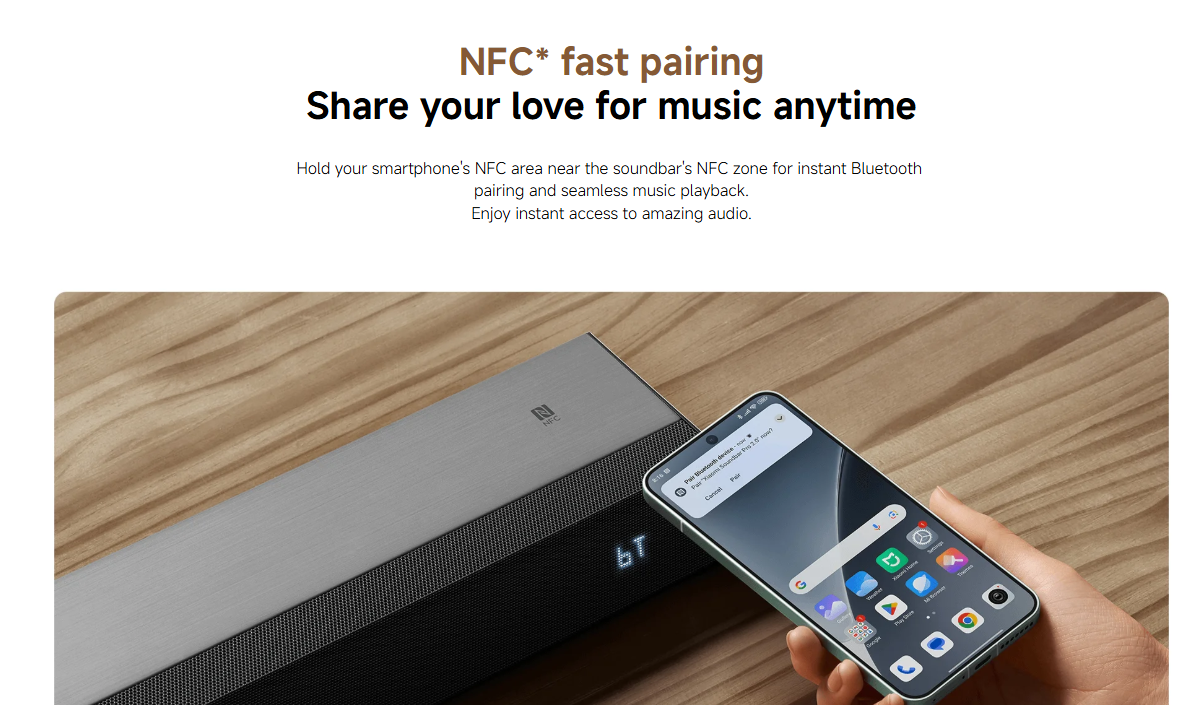 User-Friendly Connectivity: NFC for instant mobile pairing, plus ARC, optical, and coaxial options for full flexibility.
