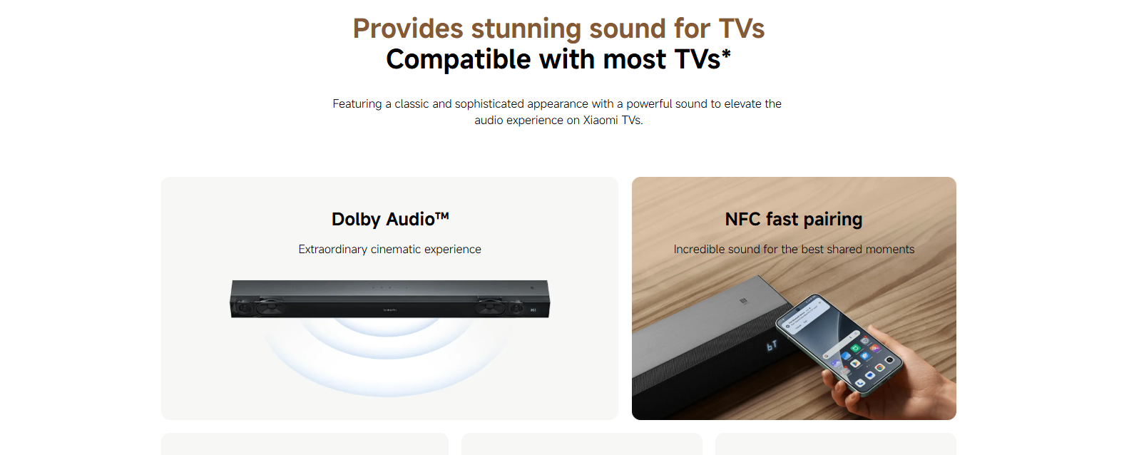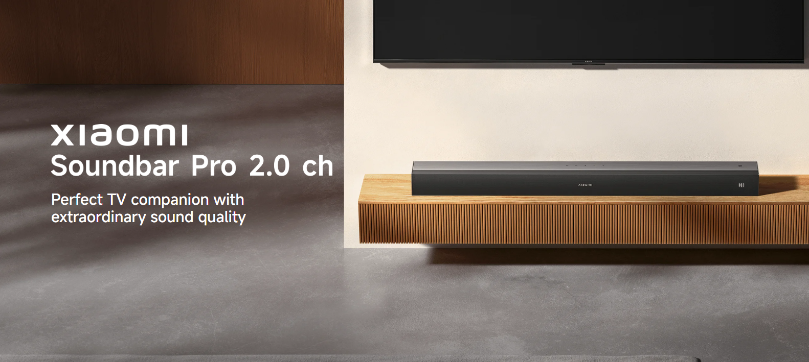 The Xiaomi Soundbar Pro 2.0 ch combines award-winning aesthetics with immersive audio performance for an approachable yet refined sound experience. It features a metallic mesh housing—recognized with a Red Dot Design Award in 2025Notebookcheck—that complements modern décor. Inside, two mid-bass speakers and two tweeters deliver up to 84 W peak power, with a frequency response spanning 50 Hz to 20 kHz